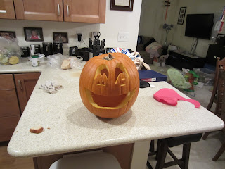 | Both of our girls most noticeable feature is their eyes - so we brought that to our pumpkin and gave it a BIG Anna mouth |